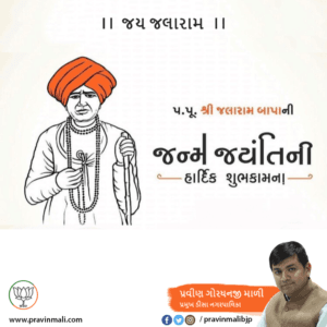 સંત શિરોમણિ શ્રી જલારામ બાપાની જન્મજયંતીએ તેમને શત શત વંદન કરું છું. મહાન સંત શ્રી જલારામ બાપાએ સામાજિક ભેદભાવ વિના સમગ્ર વિશ્વમાં શ્રદ્ધાની જ્યોત જગાવી પ્રેમ, શાંતિ અને માનવતાનો સંદેશ વહેતો કર્યો છે. શ્રી જલારામ બાપાની અનન્ય કૃપા આપણા સૌ ઉપર સદાય વરસતી રહે તેવી પ્રાર્થના.