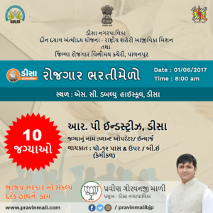 આર. પી ઈન્ડસ્ટ્રીઝ ડીસા | રોજગાર ભરતી મેળો – 2017 ડીસા