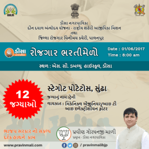 સ્ટેગોટ પોટેટોસ સુંઢા | રોજગાર ભરતી મેળો – 2017